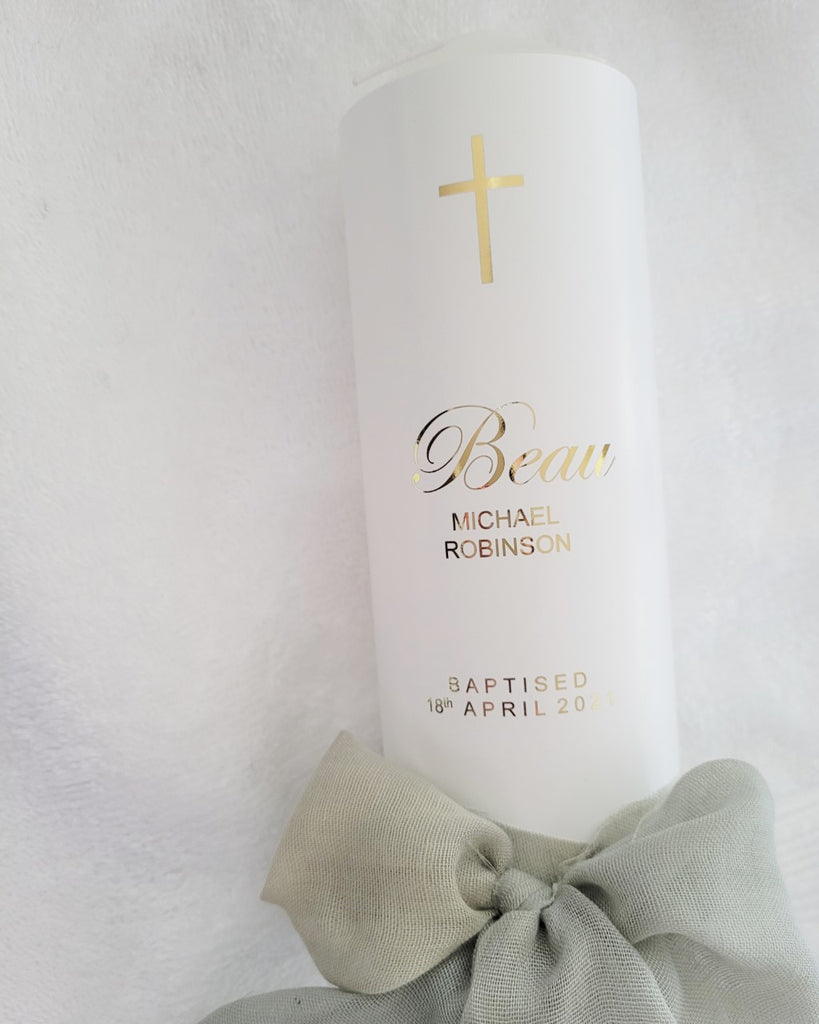 Example custom text: Sophia Garigali Baptised 30th September 2023