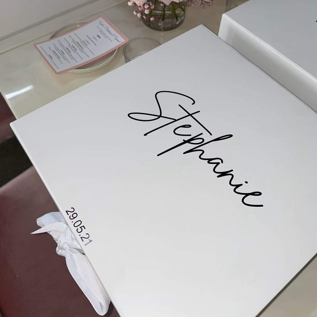 You can personalise the name on the front of the box. The inside will be as shown in the photo (standard font plus same font as the front).